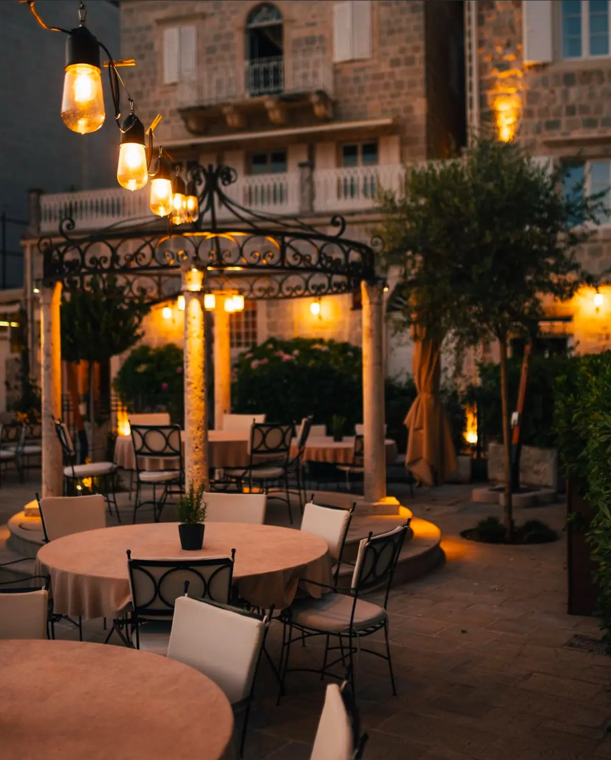 Restaurant Djardin, a hidden gem in historic Perast, offers an authentic Montenegrin wedding experience in a centuries-old setting. The venue’s terraced gardens overlook the Bay of Kotor, providing a naturally theatrical setting for ceremonies and receptions. Stone staircases, ancient walls, and Mediterranean vegetation create a romantic atmosphere unique to this UNESCO-protected town. The restaurant is renowned for its exceptional local cuisine and intimate ambiance, perfect for couples seeking an authentic coastal Montenegro celebration.